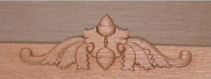 ナラ材はブラストでは美しく彫れないため、全て手彫りで彫っています。とても堅いものです。