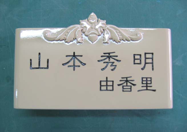 *木の代わりに樹脂系の板を作って、アクリルウレタン塗装をしてからブラストで彫りました。