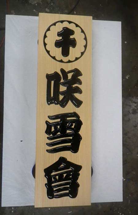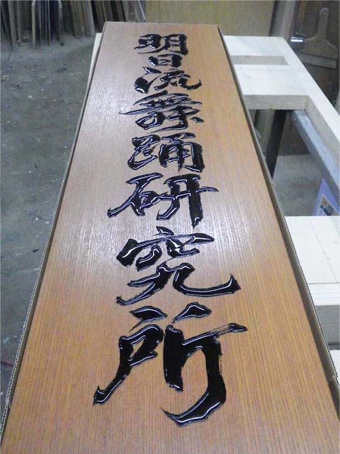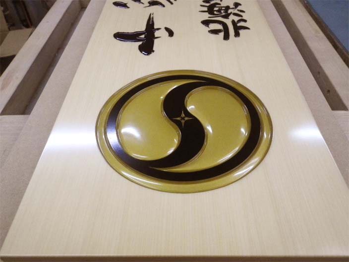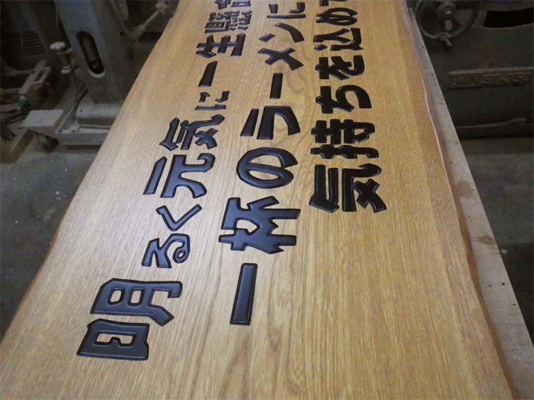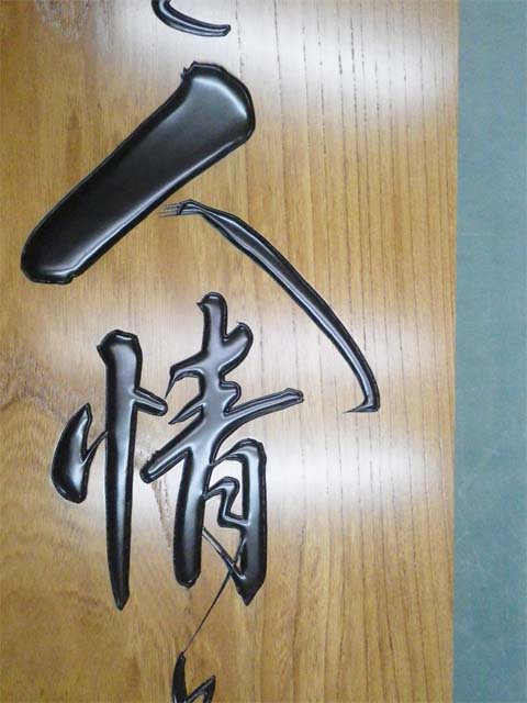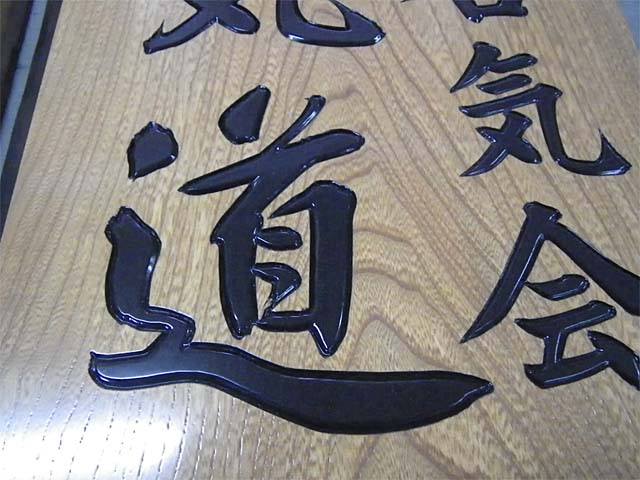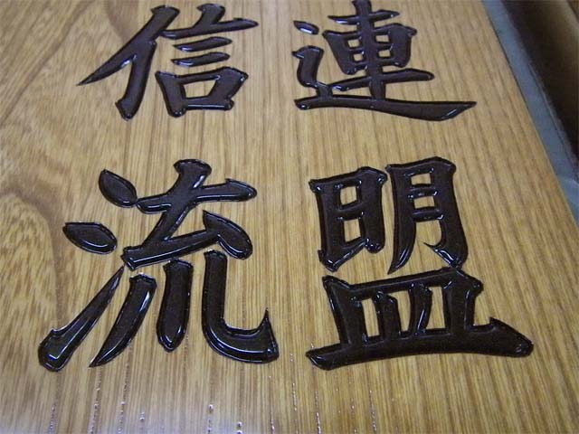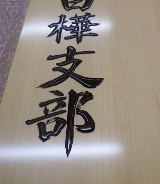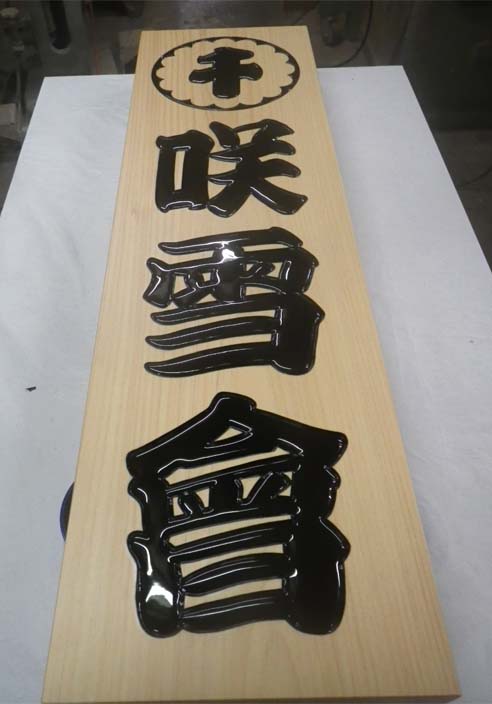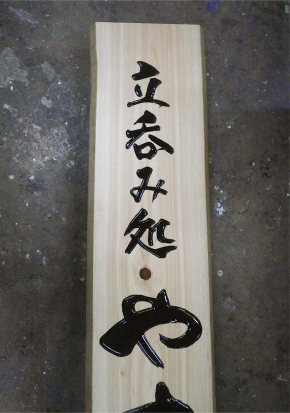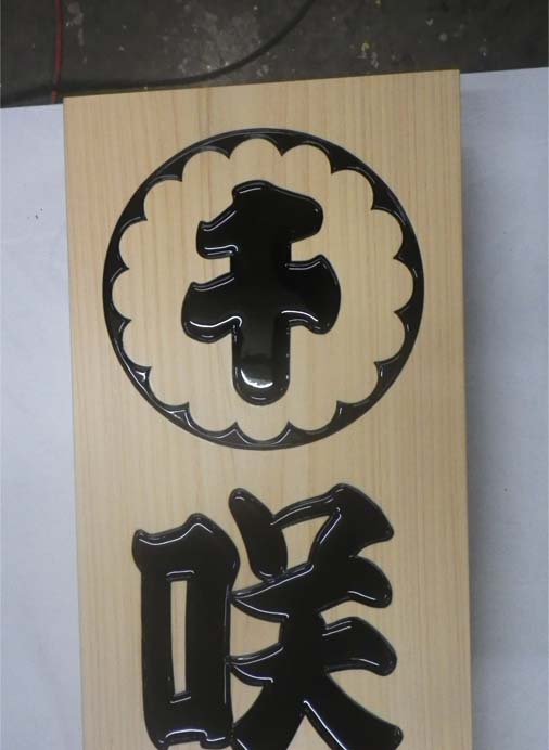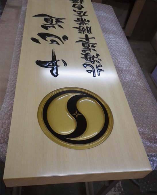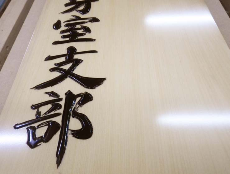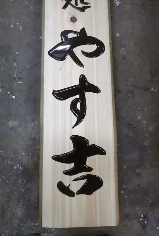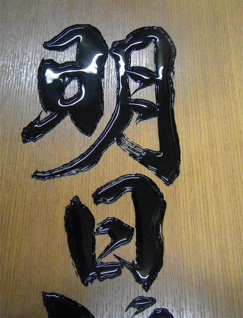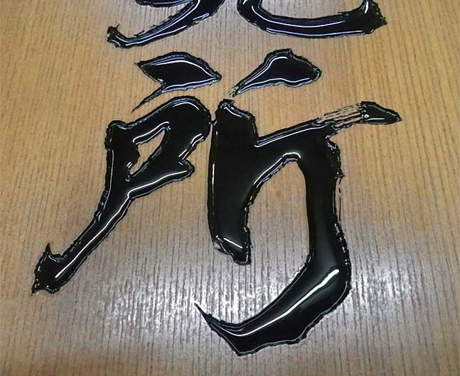 文字塗装⇒ウレタン2液塗料黒塗装ツヤ有り(文字トリミング)+文字ブチ、クリアプラス筆書き