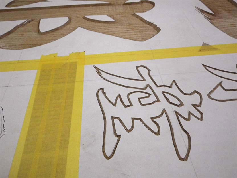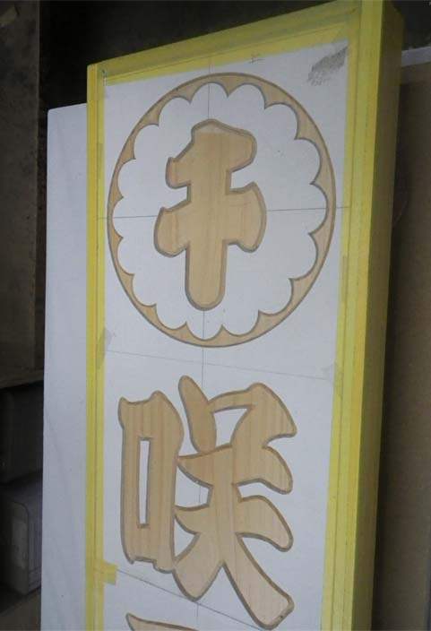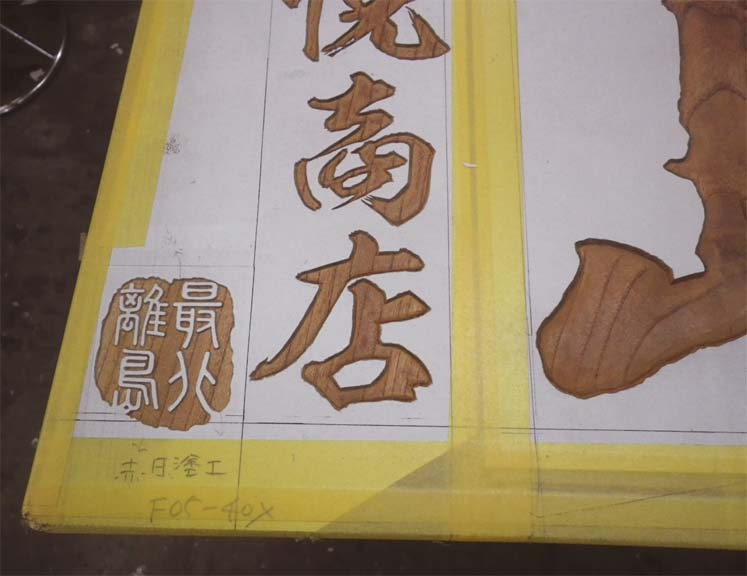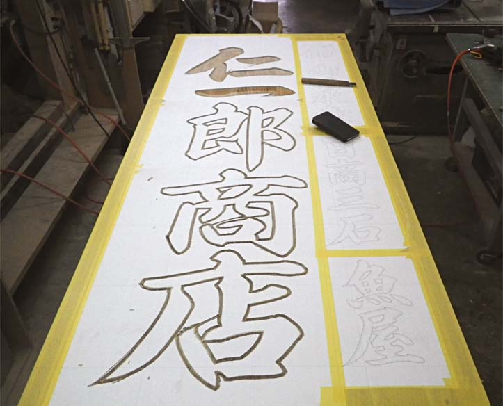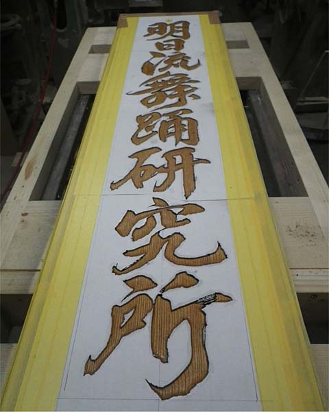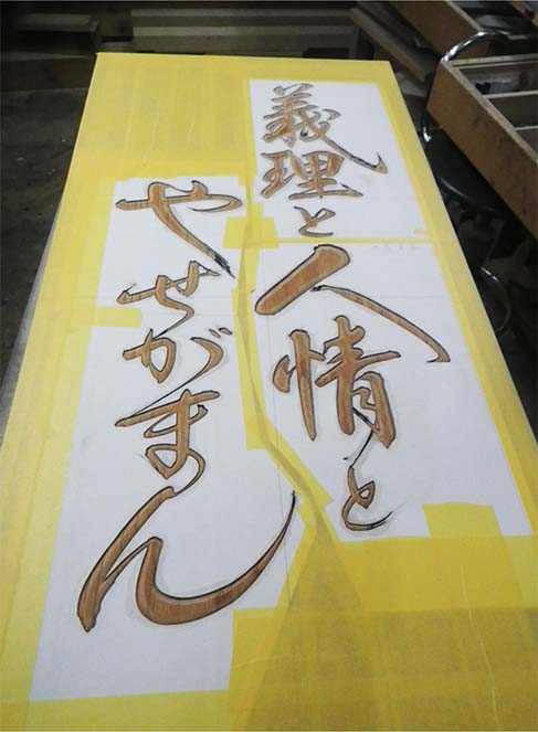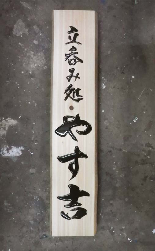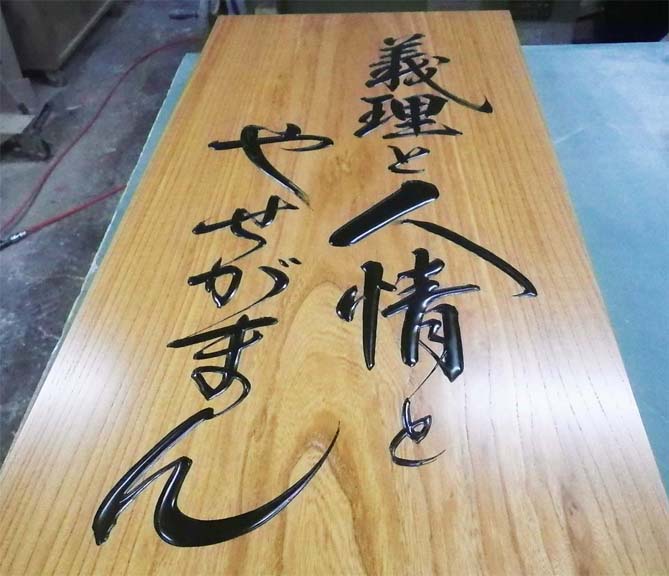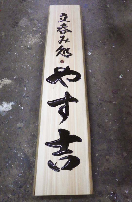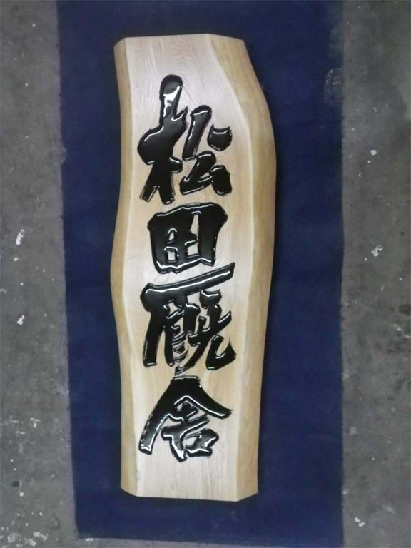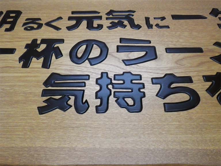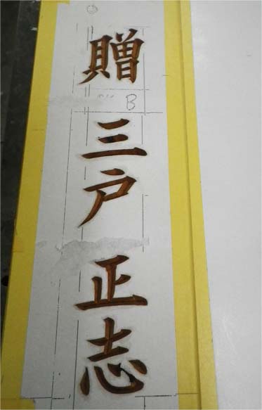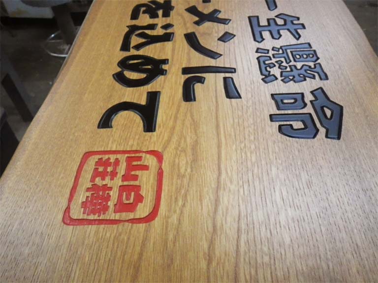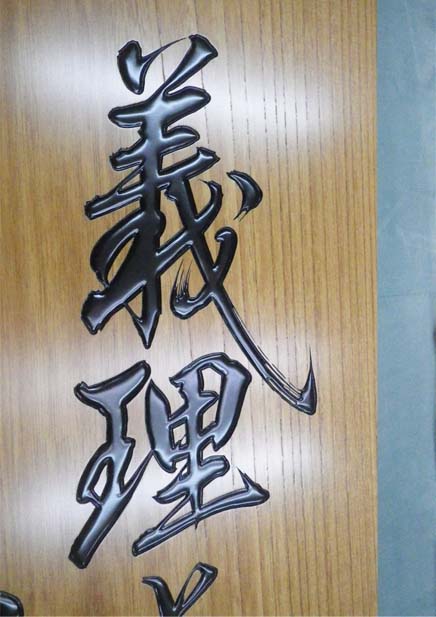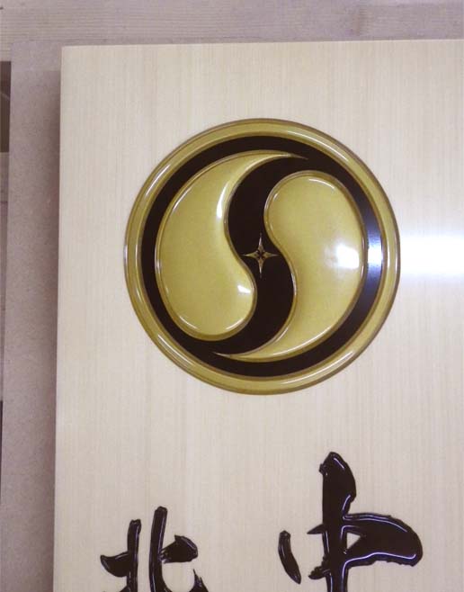 文字塗装⇒ウレタン2液塗料黒塗装ツヤ有り(文字トリミング)+文字ブチ、クリアプラス筆書き