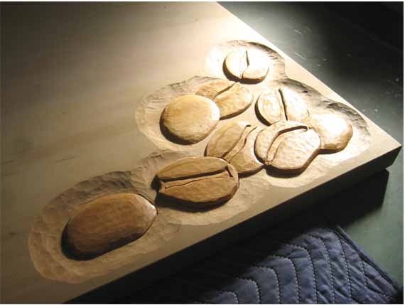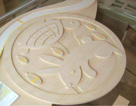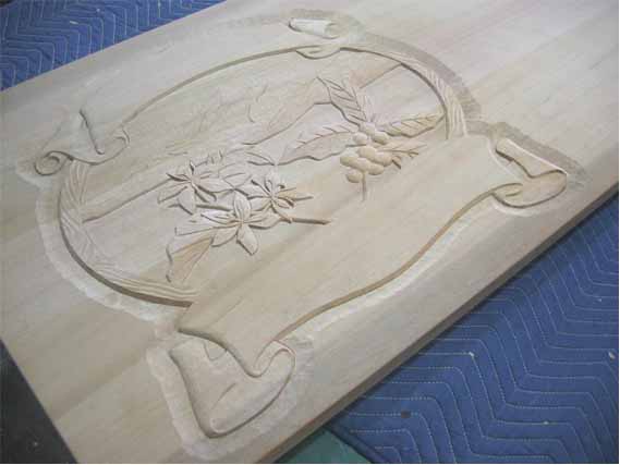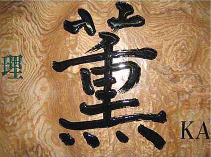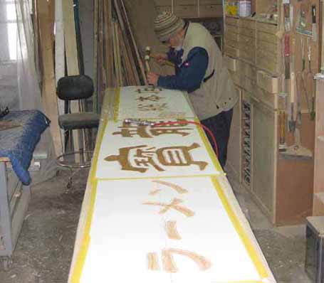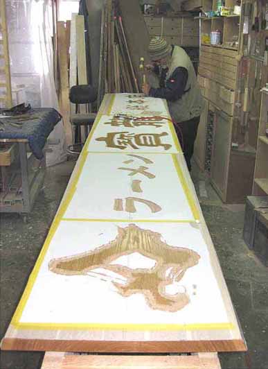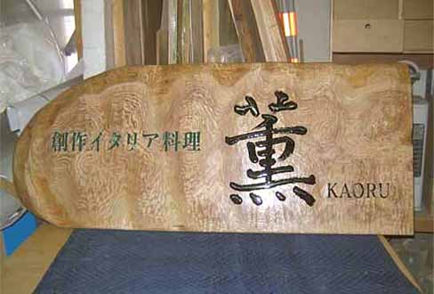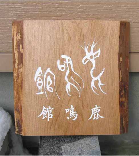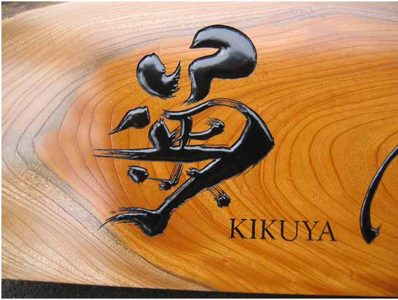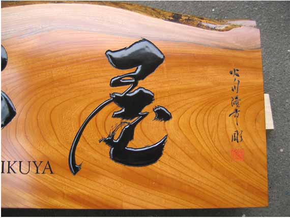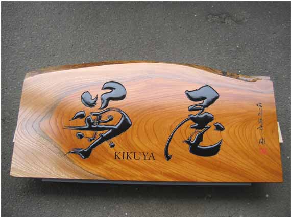 3.文 字 :ケミカルウッド・ケヤキ かまぼこ彫(彫刻丸仕上げ)