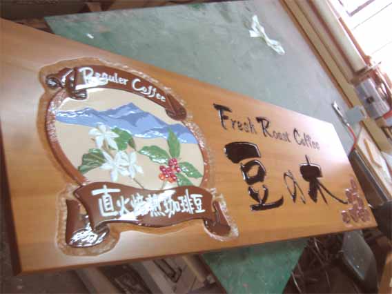 2.ベース塗装:アクリウレタン塗装 半ツヤ仕上 3.文字:かまぼこ彫、ウレタン塗装 半ツヤ仕上 |
