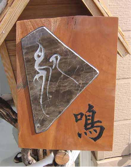 文字:サンドブラストエッチング 左の「鳴」は手彫